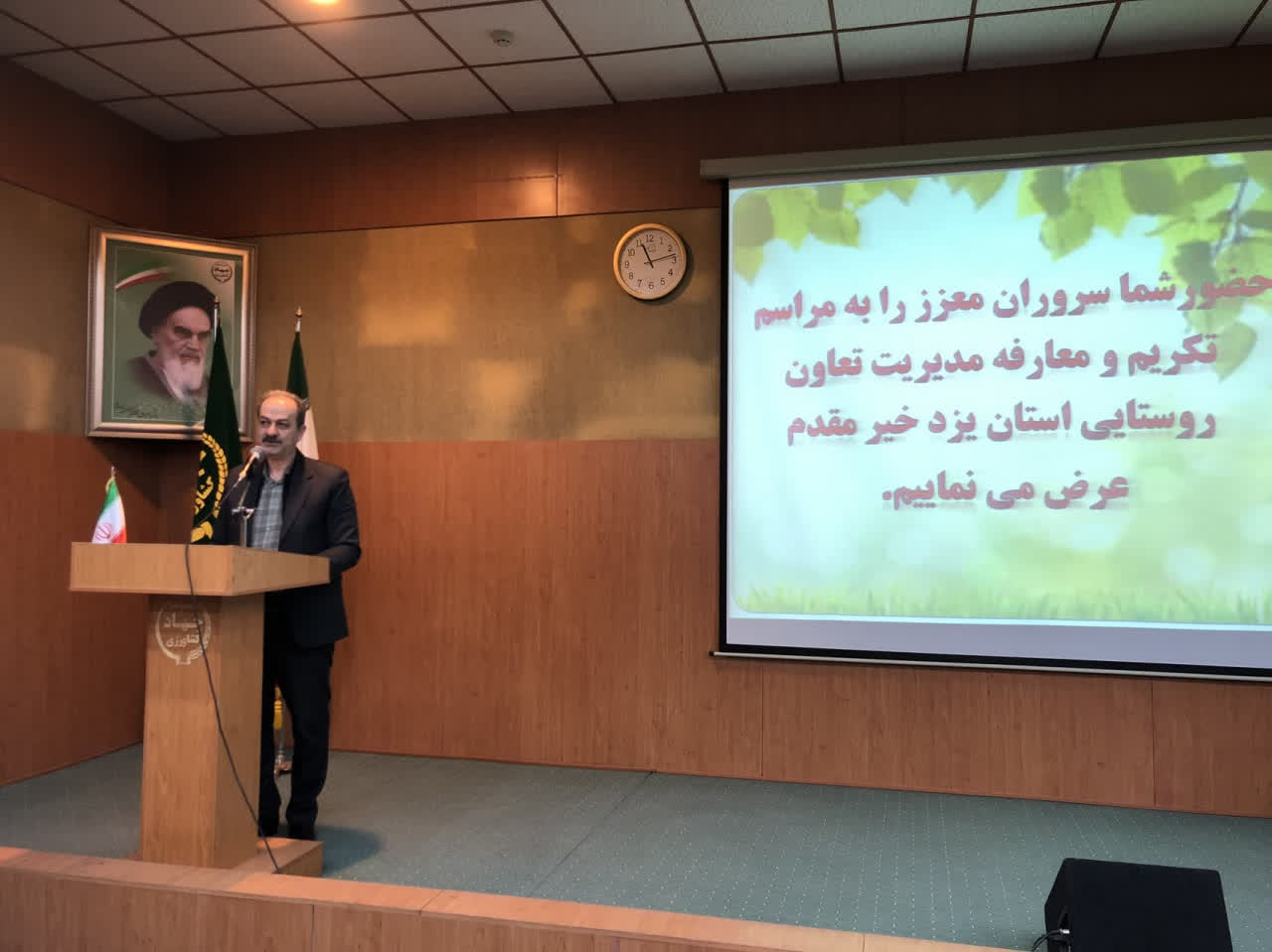 جلسه تکریم دشتی و معارفه حسینی پور سرپرست جدید مدیریت تعاون روستایی استان یزد با حضور منوچهر توسلی عضو هیئت مدیره سازمان مرکزی، علمدار معاونت هماهنگی امور اقتصادی و گردشگری استان یزد، حاجی حسینی رئیس سازمان جهاد کشاورزی استان یزد، فلاح زاده مدیرعامل شرکت شهرکهای صنعتی استان، معاونین جهاد استان، مدیران عامل اتحادیهها و شبکههای تحت پوشش و پرسنل تعاون روستایی برگزار شد.